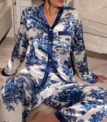 Price range: 29,92 € through 33,22 €Women’s Satin Lace Trimmed Pajama Set Sexy Cozy Two Piece Pajama Set Home Wear For Fall/Winter