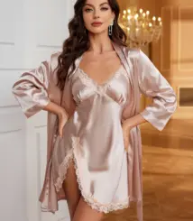 Price range: 53,92 € through 68,80 €Women’s Four Seasons Home Furnishing Lace Up Pajama Pajama Dresses Two Piece Set Thin Outerwear Medium Length Pajama Set