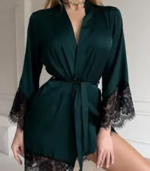 Hot-selling solid-color polyester nightgown lace see-through robe for women 2pcs set
