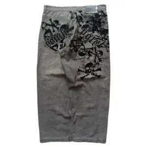 Retro New Southpole Jeans Skull Watermark Loose Jeans Men’s and Women’s Y2K Harajuku Gothic Hip Hop Skateboard Pants Street Wear