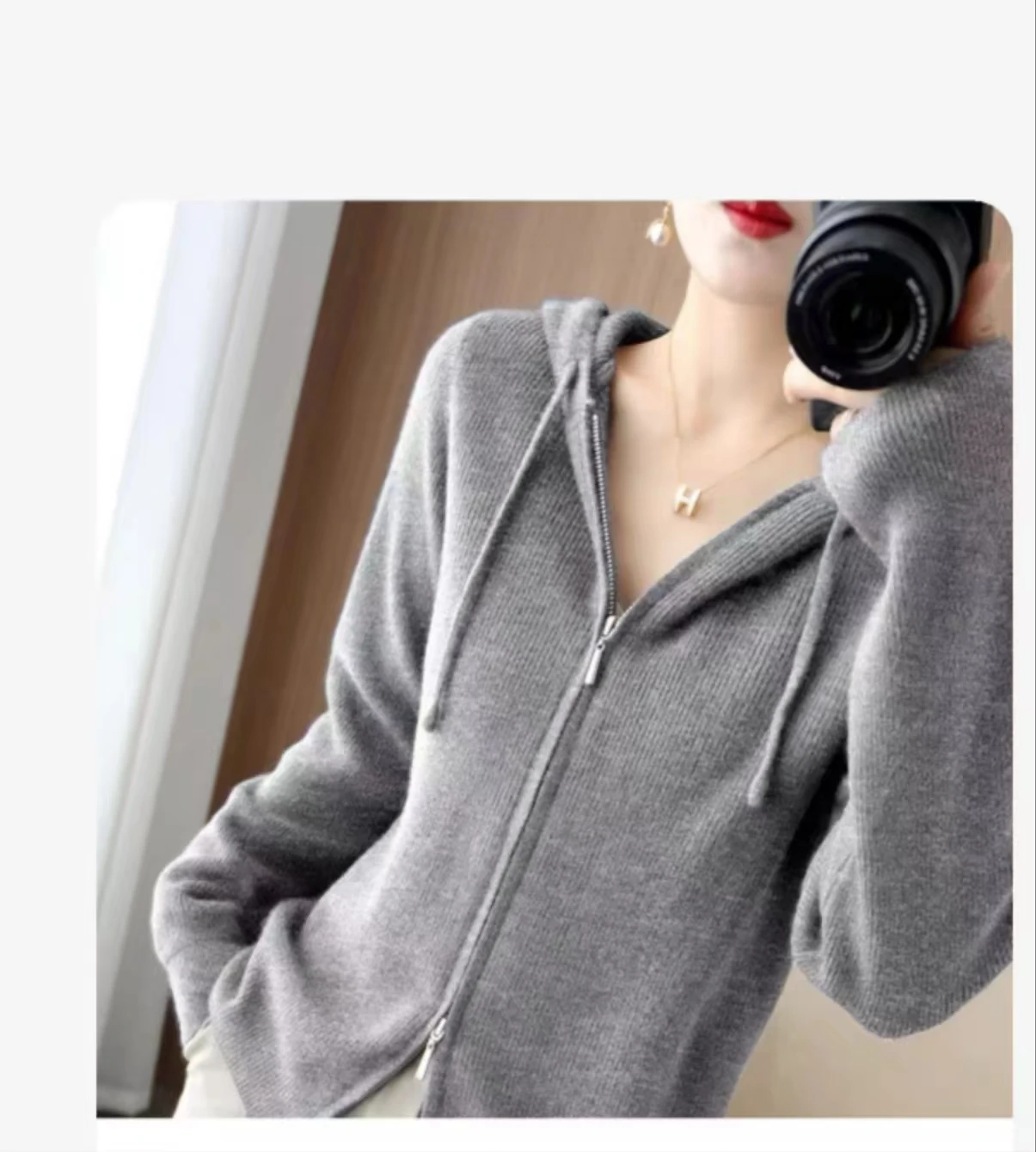 Women Cardigans Double Zippers Hoodied Sweater Solid Loose Casual Cadigans Long Sleeve Warm Autumn Winter Knitted Sweaters