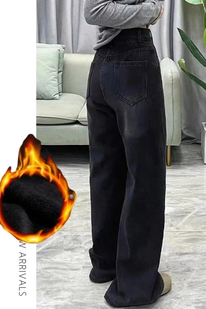 Y2k Pants Jeans for Woman Winter Fleece Lined 2025 New Thick Warmth Slim Wide Leg Straight Trousers Fashion casual